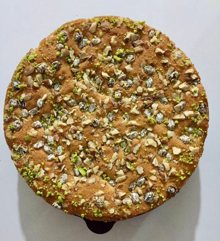 با مواد تشکیل دهنده : شكر، تخم مرغ ، گردو، كشمش ، پسته